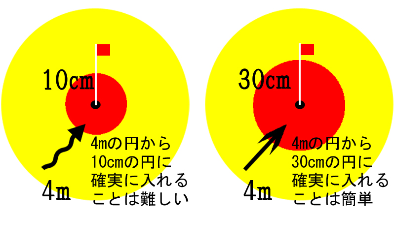 スコアアップを考える場合、まずはパターの円を大きくすることを考えましょう。